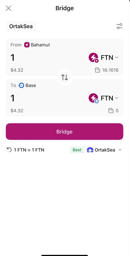 YoWallet supports bridging for the following chains: Base, Arbitrum, BNB, and Bahamut. You can easily move your FTN between these networks directly from the app.