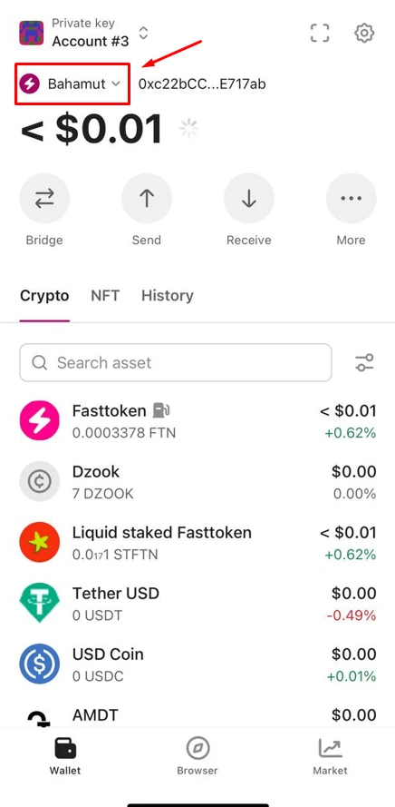 After bridging, your FTN will appear in the destination network's wallet, and your balance will be updated accordingly. You can easily switch between networks in YoWallet to view your bridged FTN.