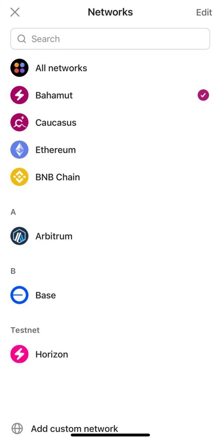 YoWallet supports Bahamut and other EVM-compatible blockchains.