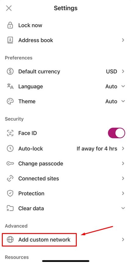 2.Tap “Add Custom Network.”